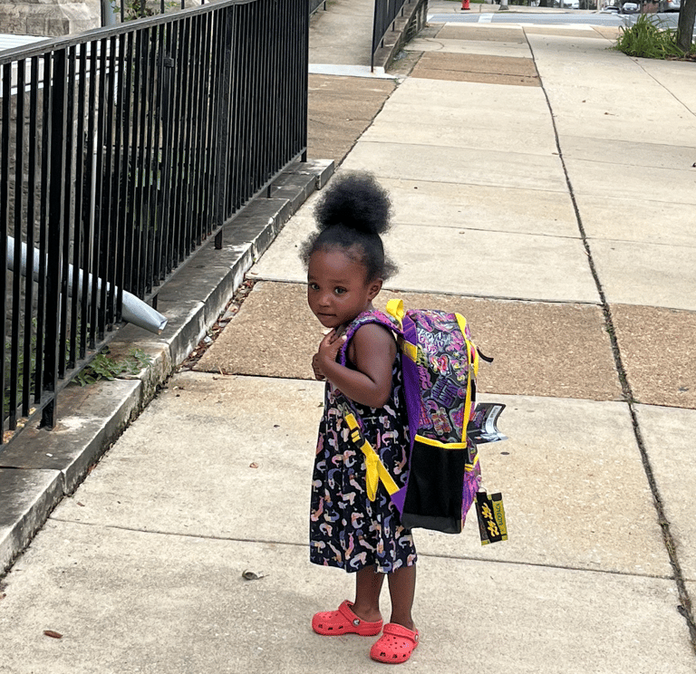She's going back to school with a backpack full of supplies from Labourers